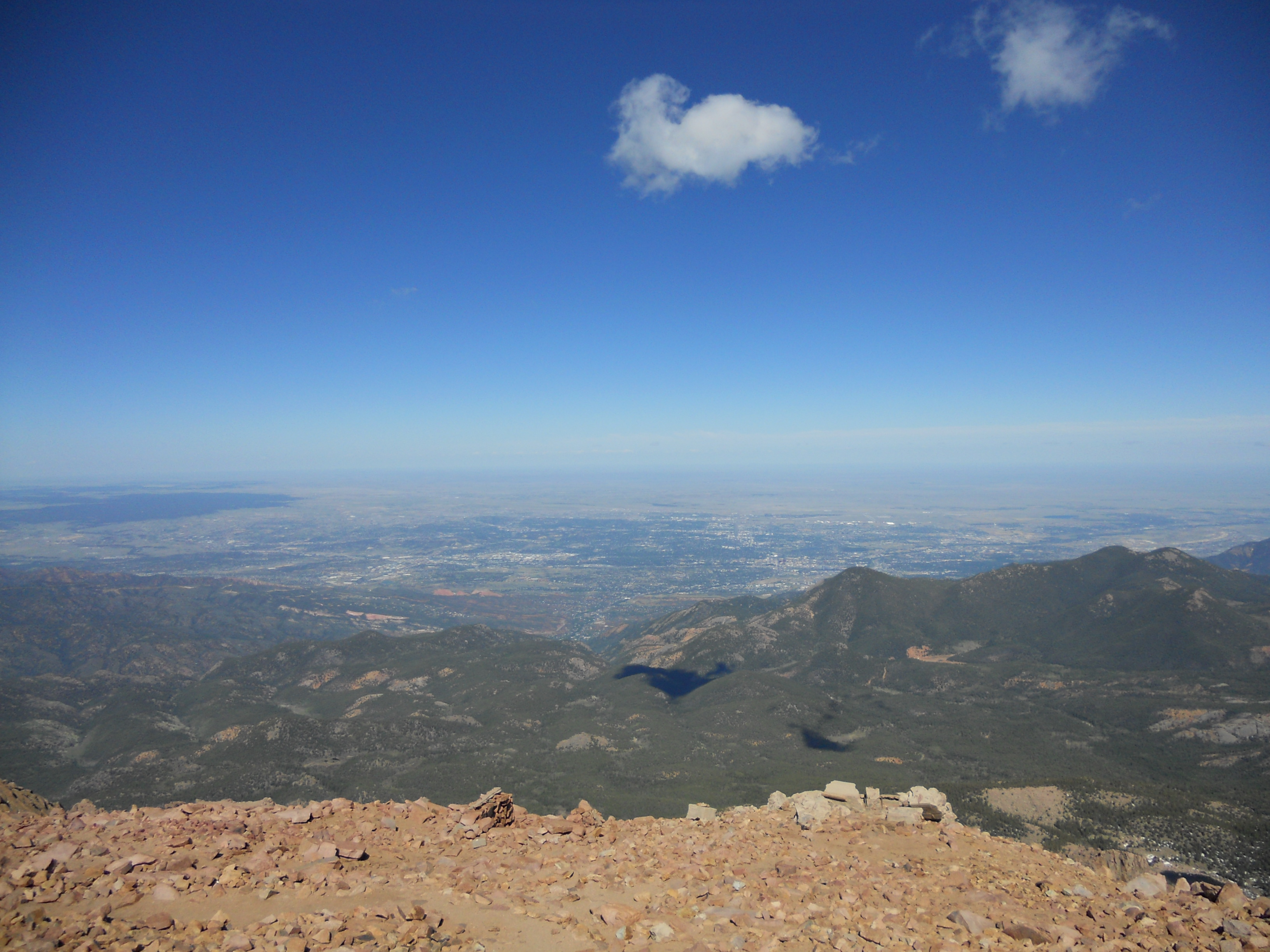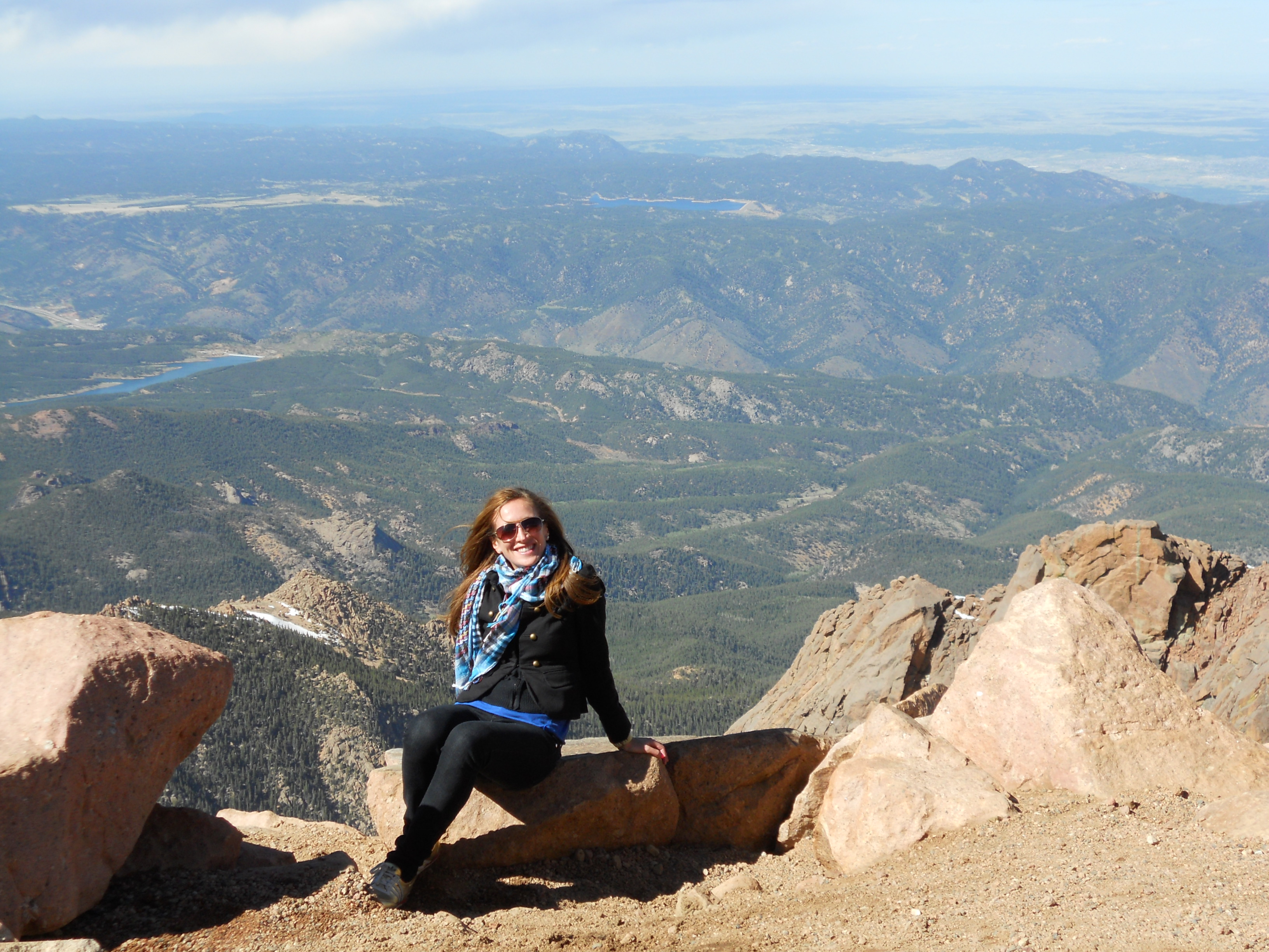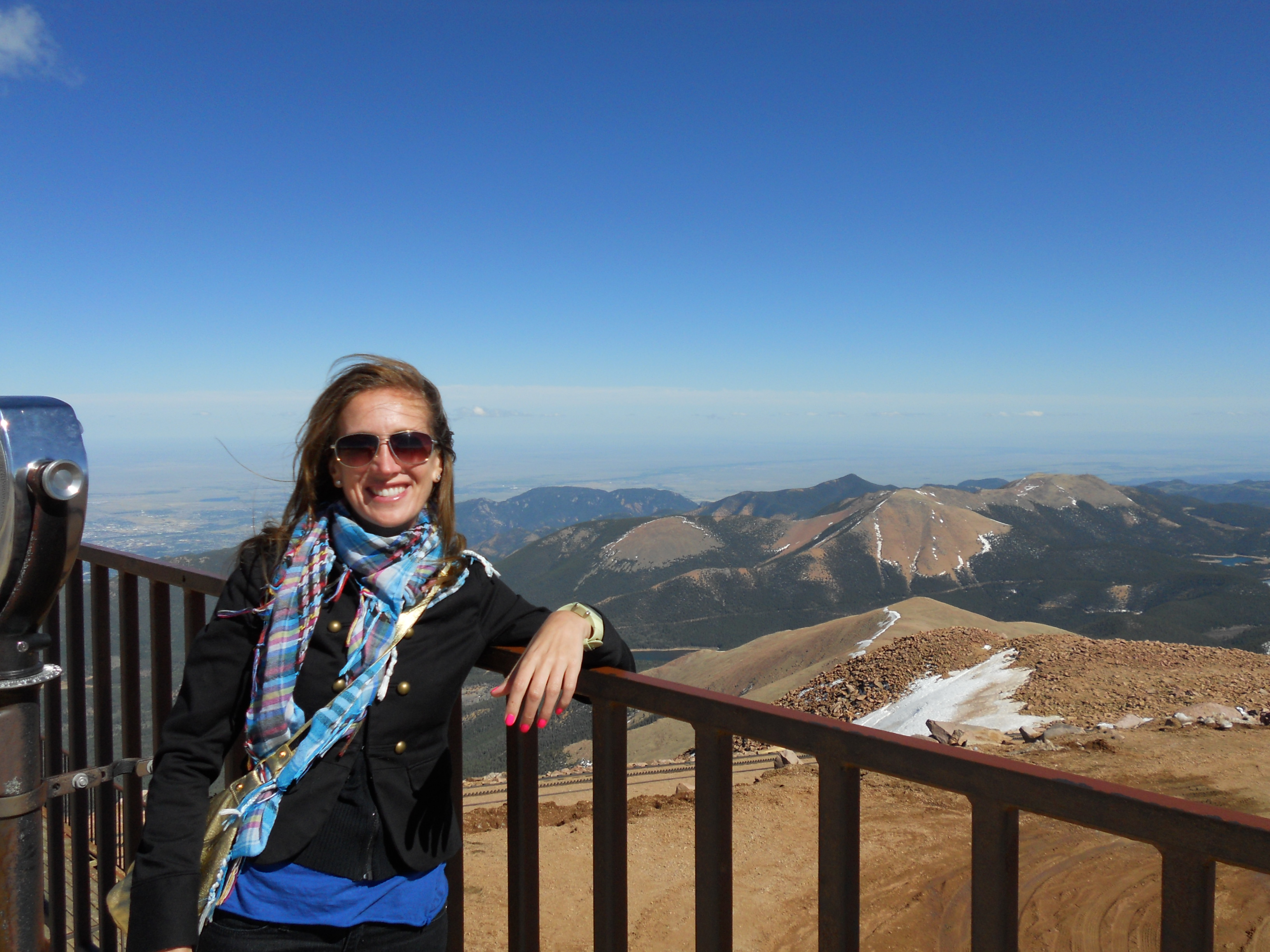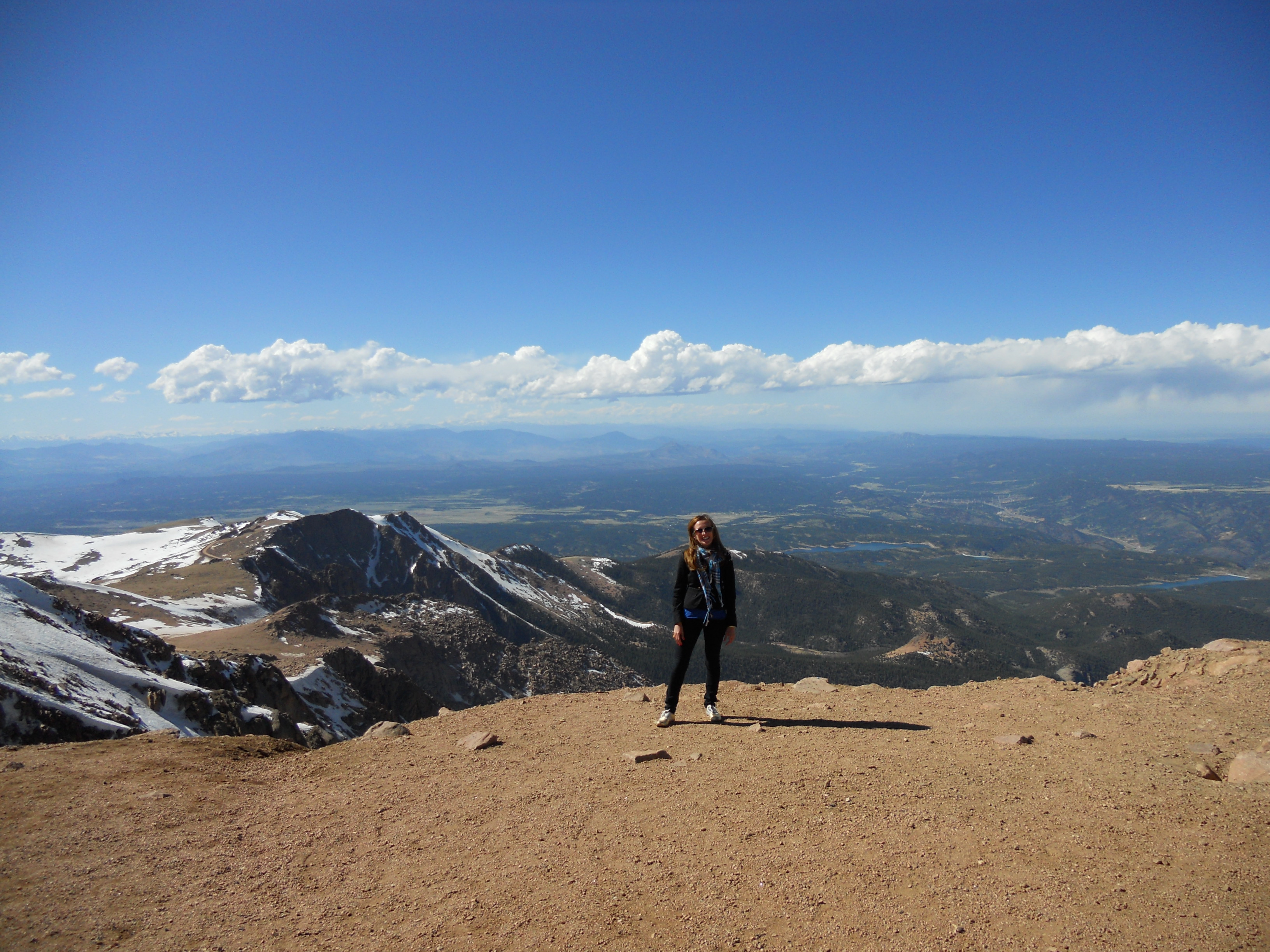 When I asked my cardiologist last year about visiting/running there, he said no… so I was a little worried about how the altitude would play with my heart. But, somehow, I had no problems, nothing, even when we got to the top ofΒ Pikes Peak, a fourteener (14,115 feet) in the front range of the Rocky Mountains, which was obviously, gorgeous! You can see a picture of it from our drive there.