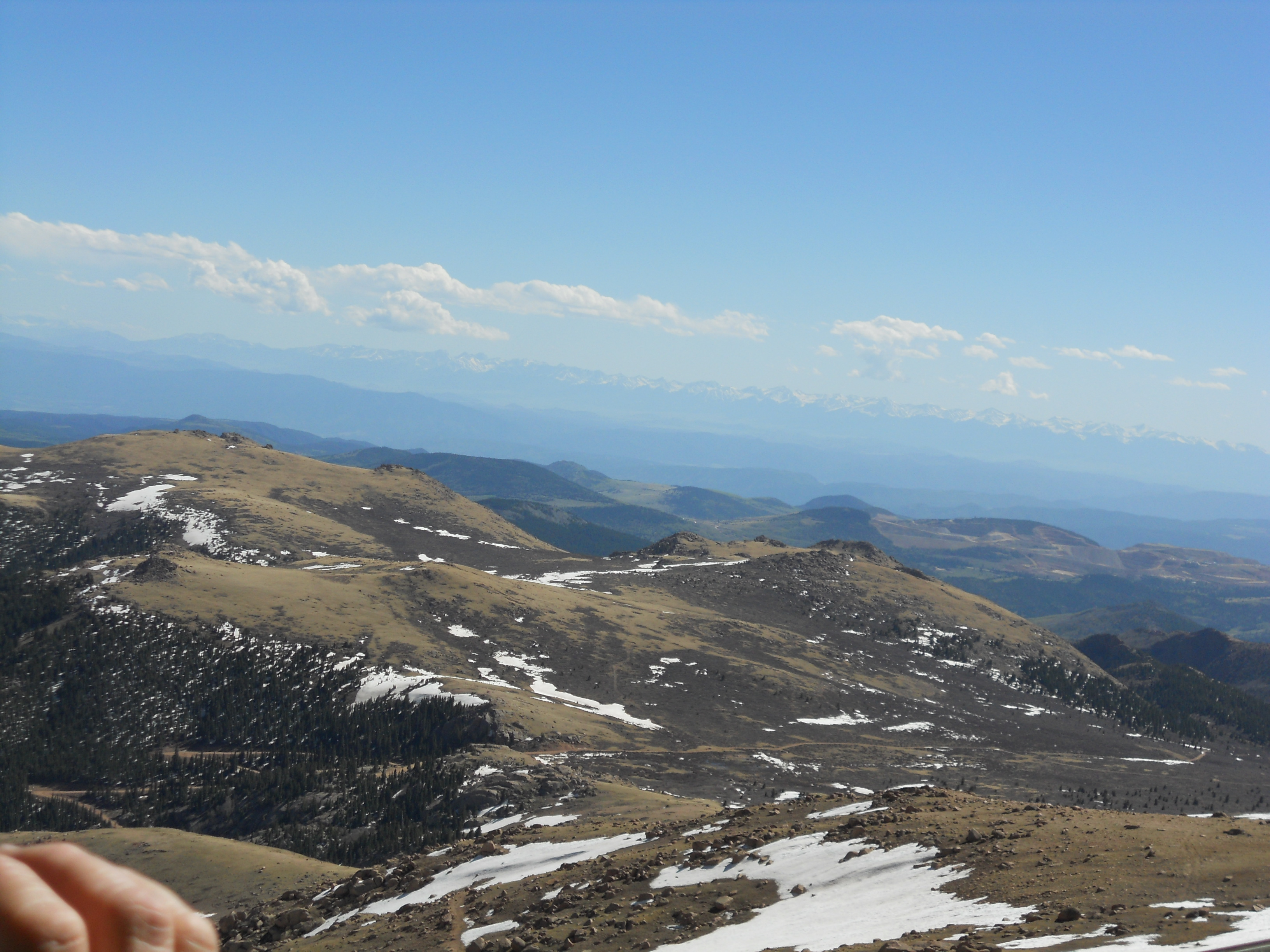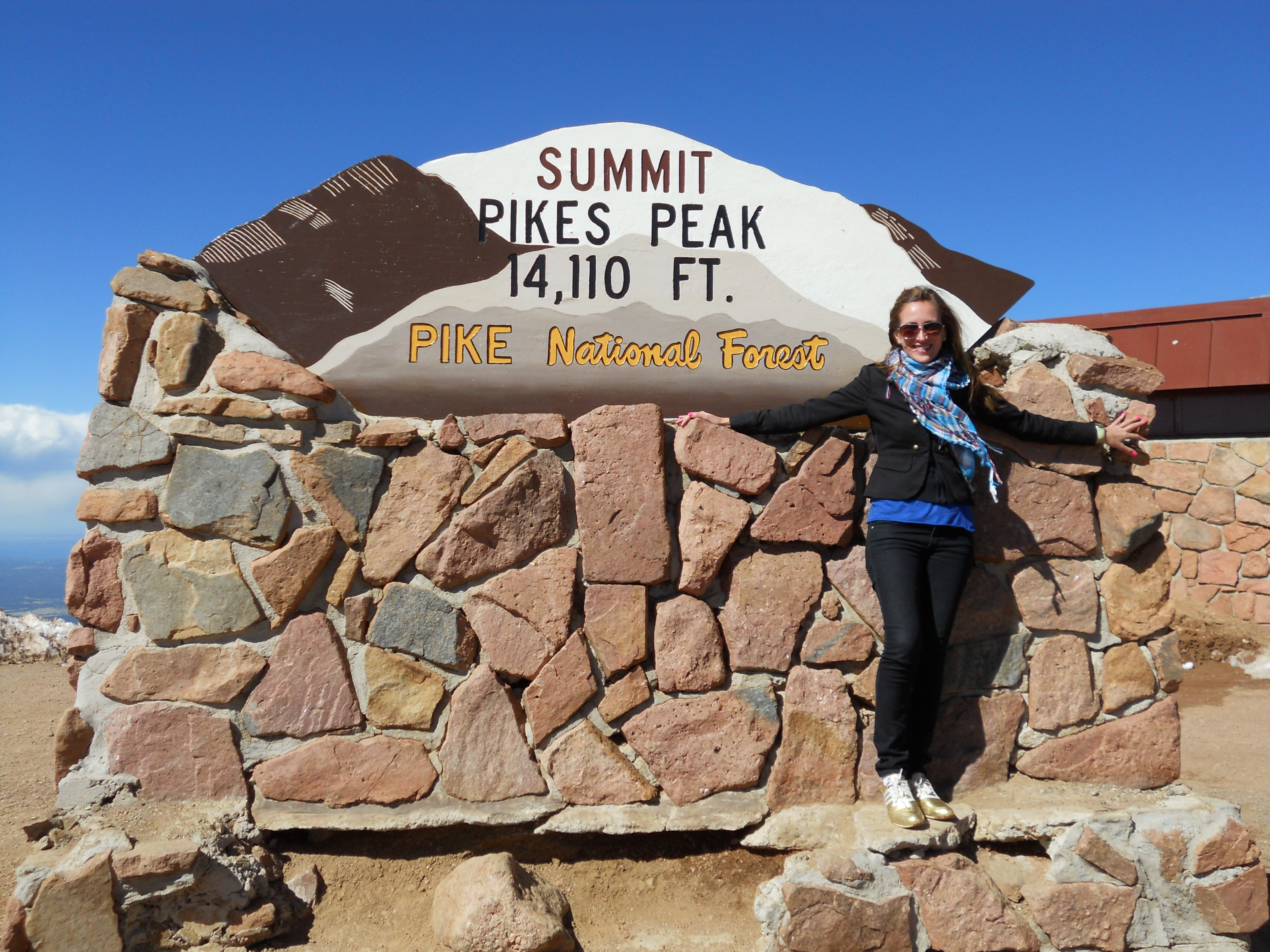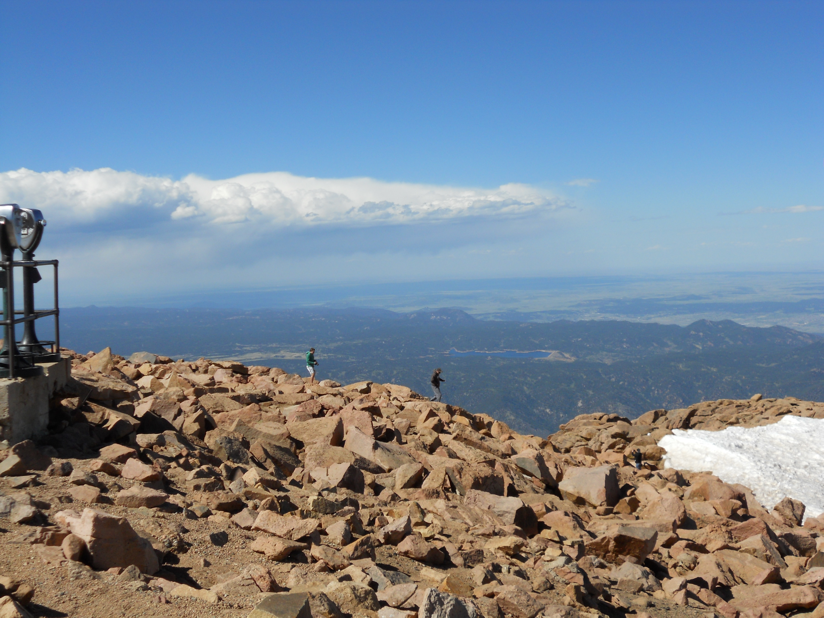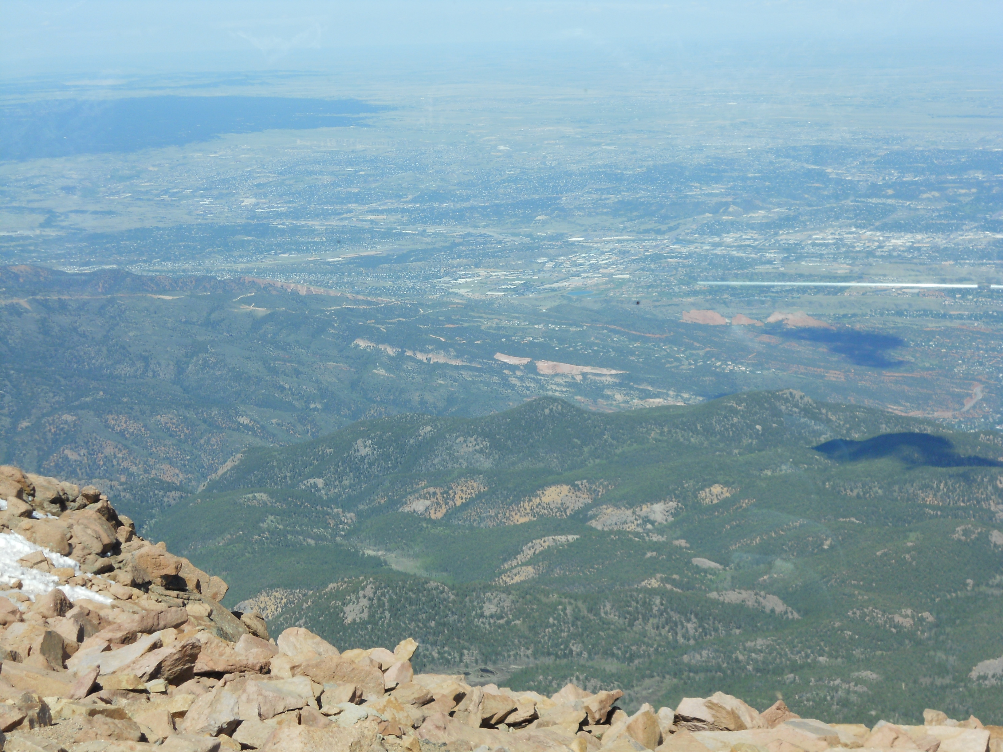 When I asked my cardiologist last year about visiting/running there, he said no… so I was a little worried about how the altitude would play with my heart. But, somehow, I had no problems, nothing, even when we got to the top ofΒ Pikes Peak, a fourteener (14,115 feet) in the front range of the Rocky Mountains, which was obviously, gorgeous! You can see a picture of it from our drive there.