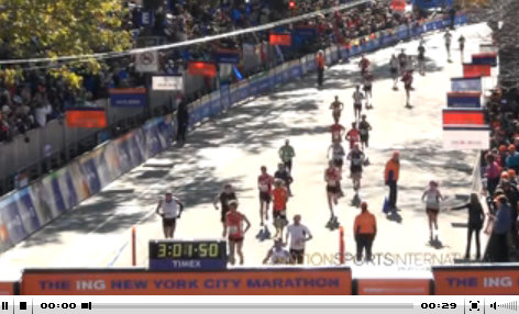 I come into the finish line; Mary Wittenberg and I high five and we both shout out (you can see itΒ
