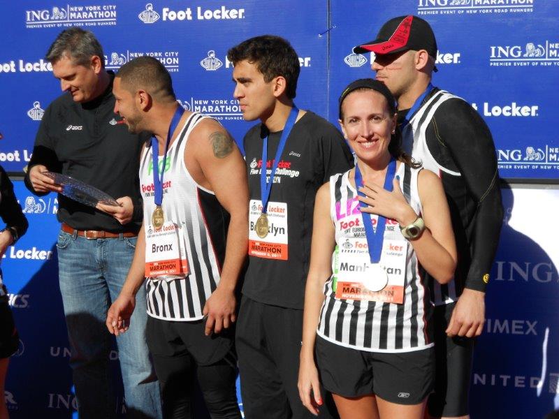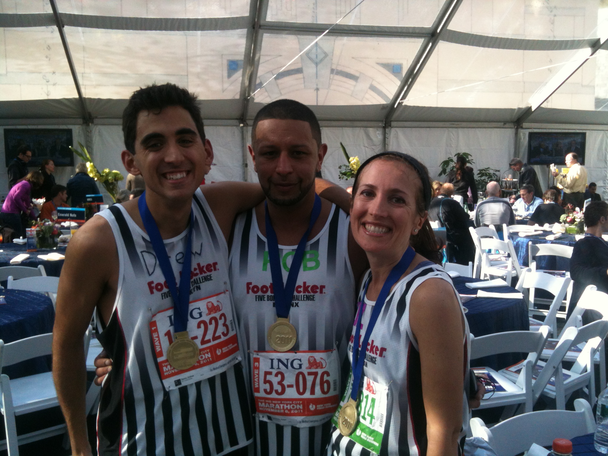 By then, our friends and family had moved over from the bleechers to the tent, so we were all sitting and eating and having fun chit chatting for a while. I run into everyone in the tent!!! My friend (and NYRR Coach) John, who you saw in two posts this past week (the Run with Ryan/Bart one, and the expo one) had paced Apolo Ohno to a 3:25, which is fabulous for this first, but John is a 800 meter guy so he was⦠sitting down! Hilarious. Anyway, EVERYONE was there!