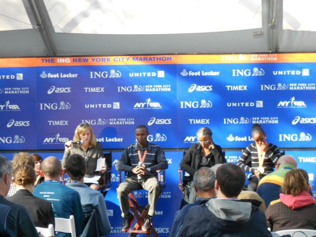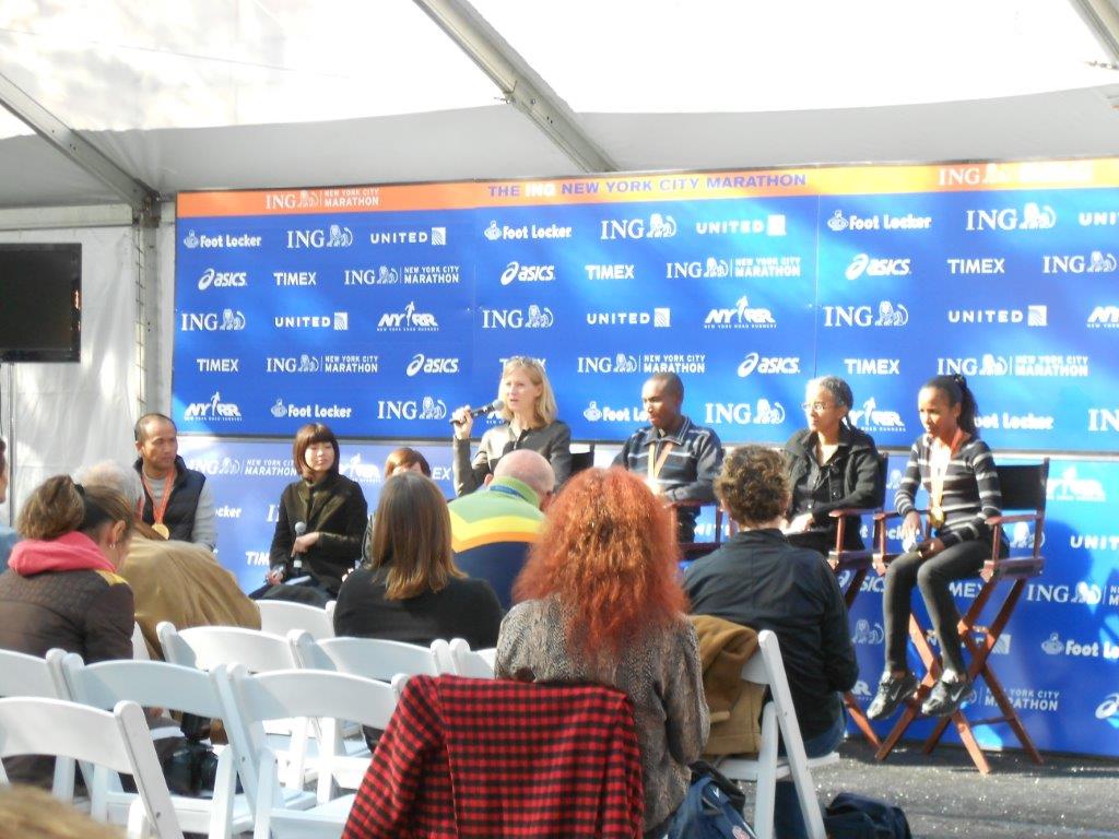 The line to get into the Marathon Pavillion was INSANE!!!! Luckily⦠I know everyone!! I headed in towards the press conference, after getting my New York Times to look at my name in there, as I do every year. Also, I never really look at it, but save them forever⦠pfffff.