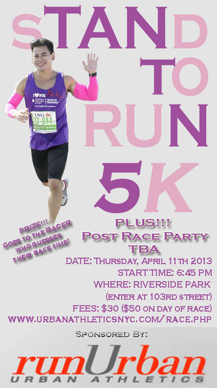 There’ll be prizes for the top finishers as well as the one who comes closest to guessing their finishing time. The race registration link isΒ here. They’ll have bag watch and a post-race Happy Hour at Five Lamps Tavern (2756 Broadway (106th Street & Broadway). So, race and be social friends!