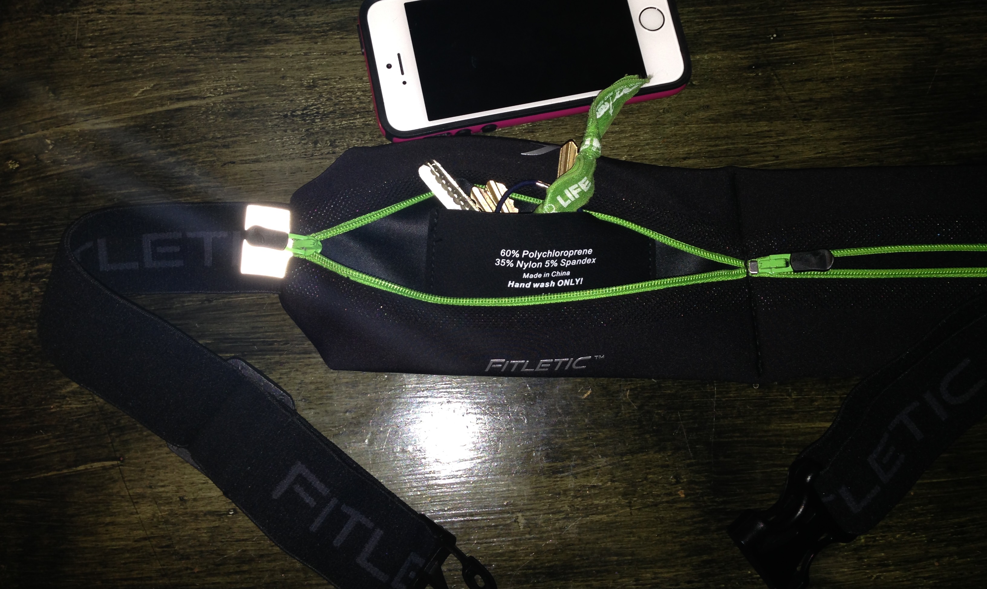 I have a spibelt, which fits a lot of stuff, and usually when carrying my phone, I’d wear the Yurbuds armband. I just got a new Iphone 5, so the armband is out. Double pouch to the rescue!!!