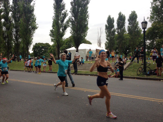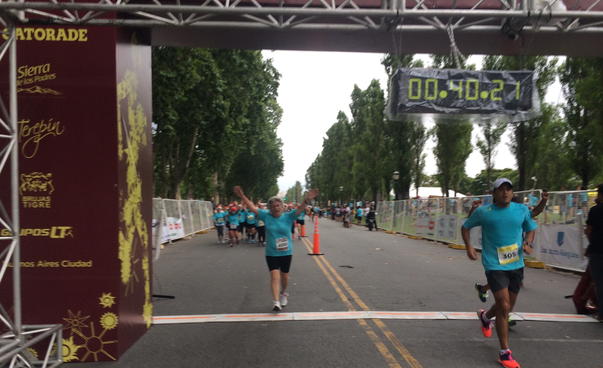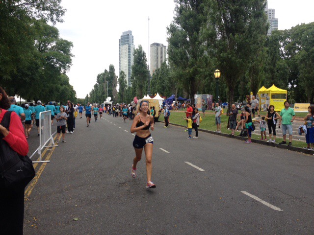 I was working hard and feeling really thirsty. Soon enough we were at the turnaround point and I focused on counting the women ahead making the turn ahead of me for the 5K return. I counted eight, and they were all quite very young. I made the turn and soon enough I caught up one of them, got on her side and told her to go together, she said something that I couldn’t understand and fell back really fast. So I kept going and soon enough I had caught up and passed another one. I saw my dad again taking pictures and told him I would be right back (when I finished!).