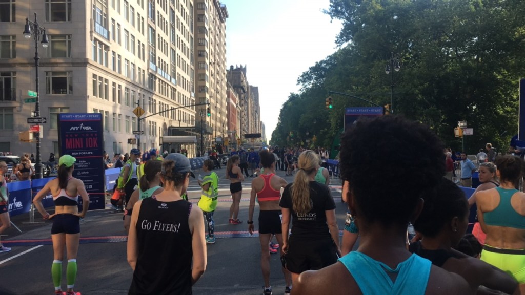 Anyway, I jogged to the start with Juan and my stomach was already hurting a bit. It was fine most of the week but it had been hurting a lot the last 10 days, and the weekend before I had to skip the NYRR Retro 4 miler because I couldn’t even walk from the cramps/spasms/whatever it was. Friday it was hurting a LOT in the afternoon, but I had been fine for a couple of days so I thought I could handle a 10K.