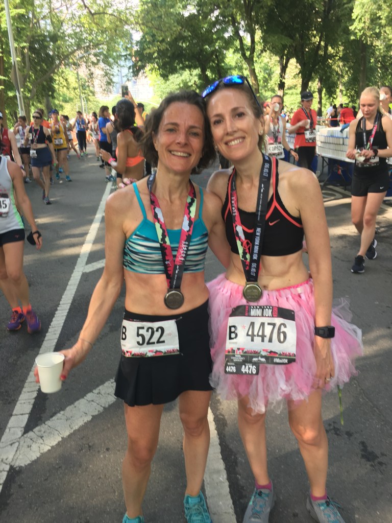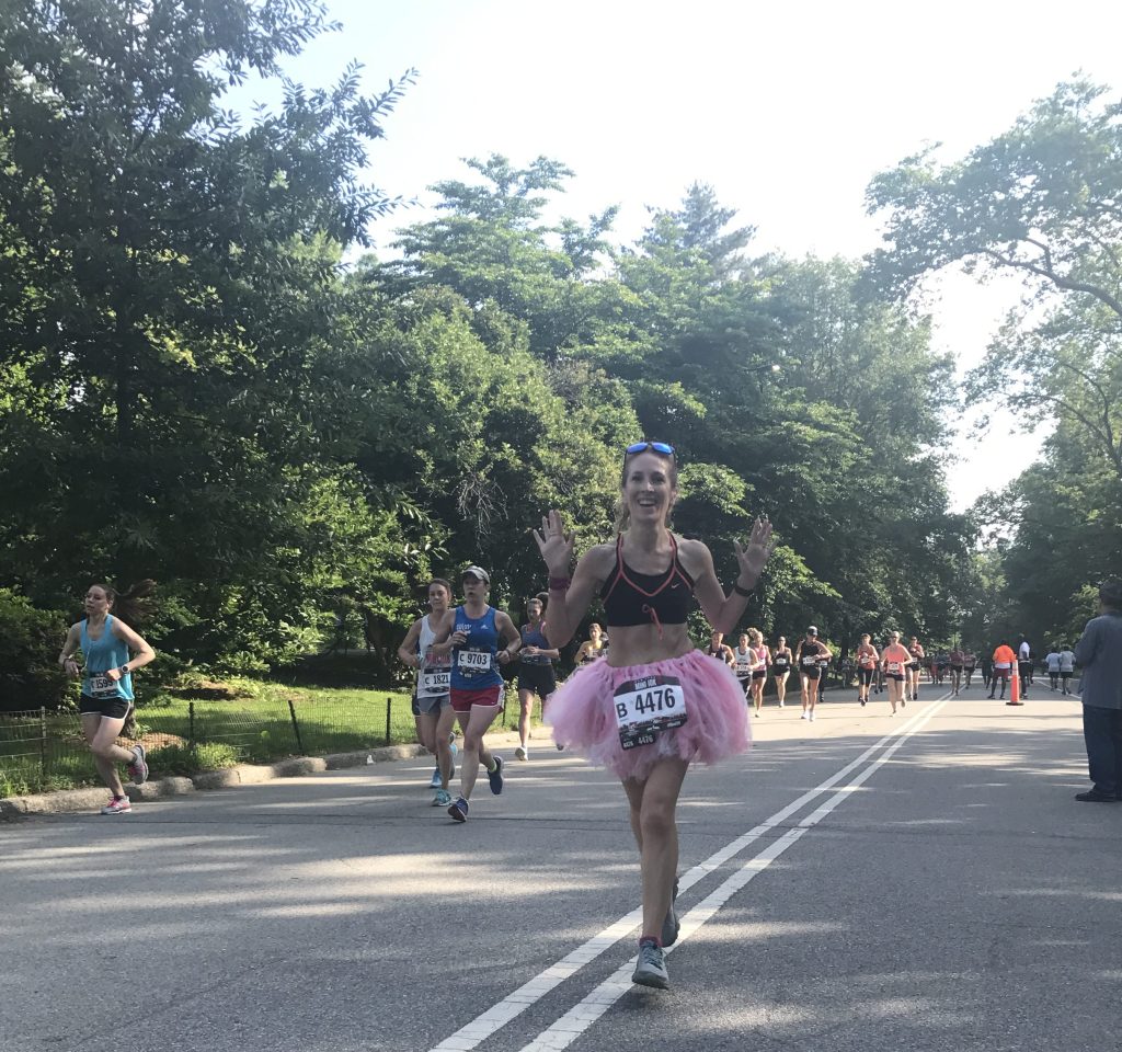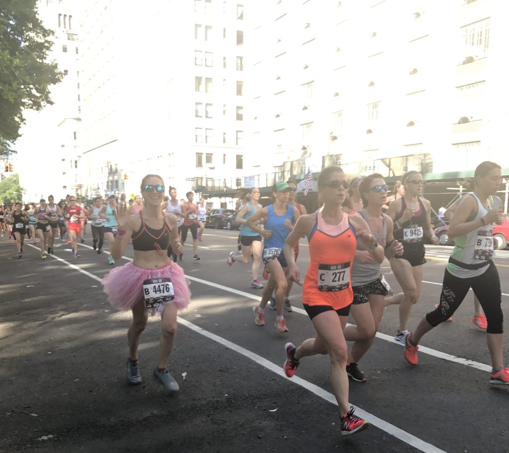 I had done the Mini 10K 8 times in a row (from 2007 to 2014) and skipped all the last three years. The course has stayed the same, a loop of the park that starts with a fast mile on Central Park West. It starts right on Columbus Circle, a straight mile on CPW, then into the park (going north), up reverse Harlem Hill towards the east side, and down south and over to the finish on Tavern on the Green. But the race is a riot. All women. SO much history. Super festive. Fun. Empowering. You really feel the times. This was the 46th run of the Mini, the first women-only race that started in 1972, named after the miniskirt, which was quite popular at the time.