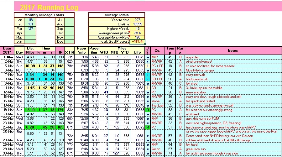 The month included a lot of coaching, loads, a few miles, lots of work hours, a November Project workouts, a visit to the Asics showroom, my birthday celebrations, a few Facebook Live Chats, the big United NYC Half Weekend and race, Club Night, lots of runs with friends, and two races: theΒ United NYC Half and the Central Park Spring 10K this past two weekends. Now that I think about it, I see why my mileage was so lowβ¦ makes sense!!!!!!!!!!!! Β Hoping Spring makes things easier and I can get out there more. I need to figure out a way to not need that much sleepβ¦!