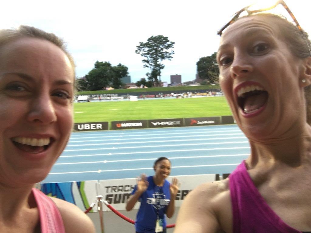 I spotted Allyson Felix right on the track and Alison and I took a selfie with her in the back and she played. For the 100000 time, I suck at selfies, so don’t judge. Am I aging myself?