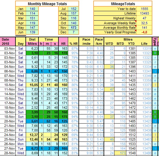- Ups: All the fun fall folliage runs… Running can be quite epic in November, when there is daylight to see it! Also, finally caught up with my yearly mileage!