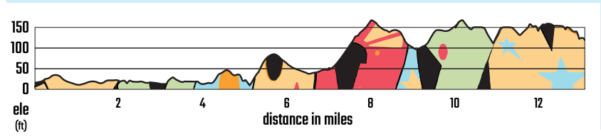 You cruise and then you find the biggest hill of the course, starts around 7.1 and itβs about 120 feet up, youβll feel this one.