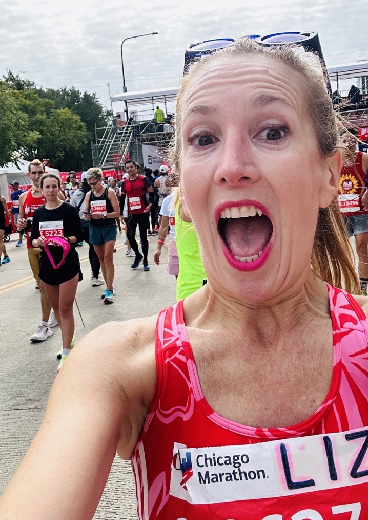 Also, please notice my gorgeous red kit. I got these at adidas the week before. And how amazing is it that I don’t need to test run stuff because I already trust the brand, the materials, the fit, so I can just roll into a marathon, take the tags off and move along?!?!?! Ha! Check out their gear especially this fab sports bra at their site.