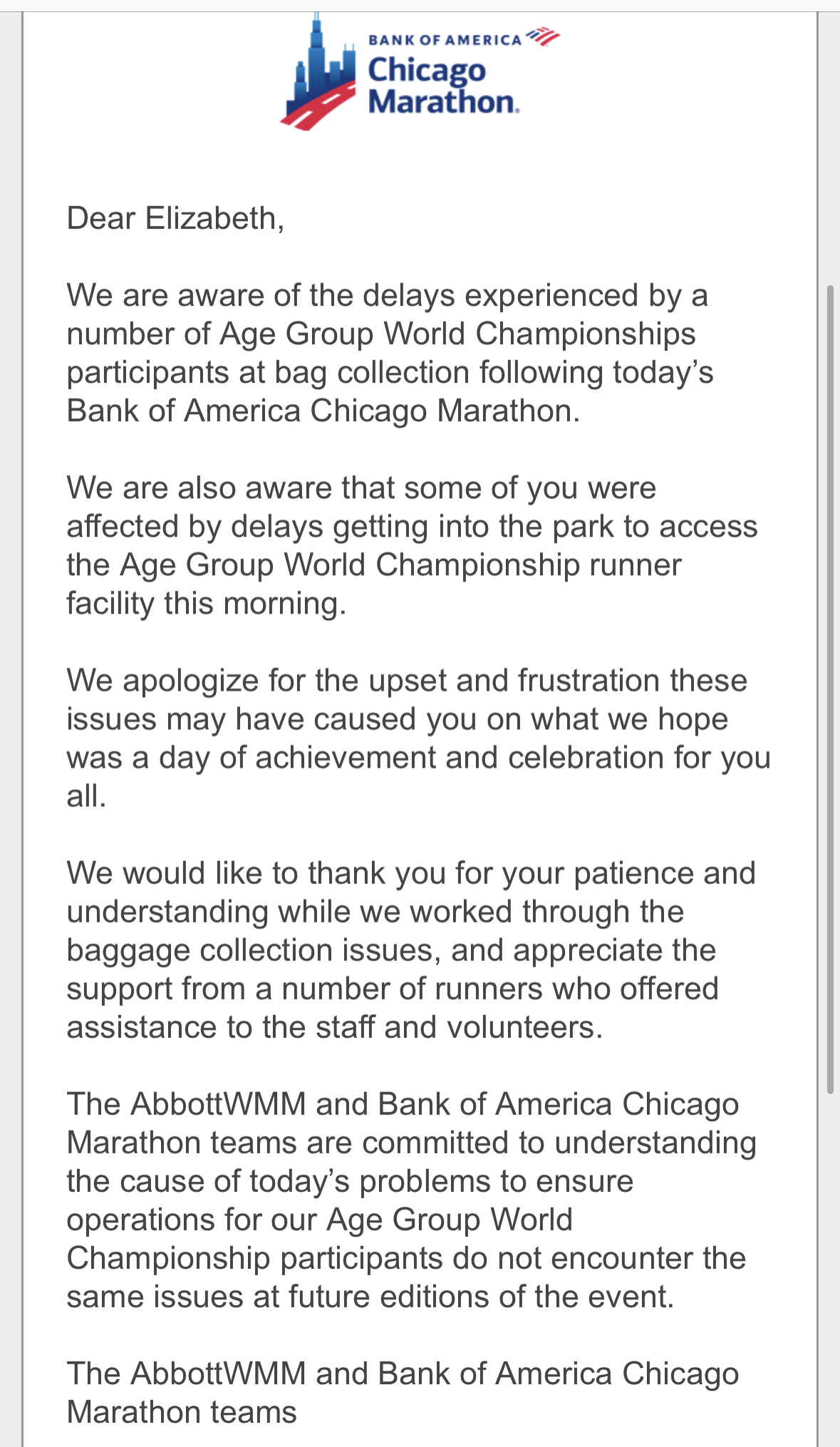 The race itself was amazing. The Championship setup, not so much. Took us a long time to be able to enter on race morning, the tent and portapotties were run over and too crowded, getting to the start was messy, etc. The organization promptly sent an apology and hope they correct those issues for the next championship